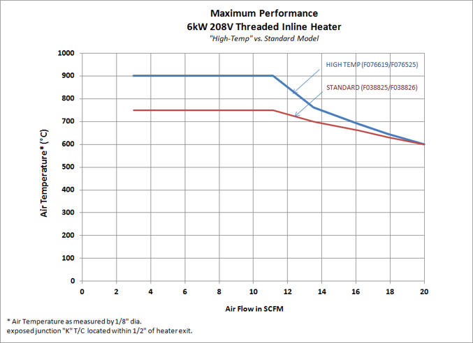 | F076525 | HT INLINE 1.25” / 6kW / 208V | 20” (508) | 1.7” (45) | 6 | 208 | 1 | 29 | 900°C | 70°C |
